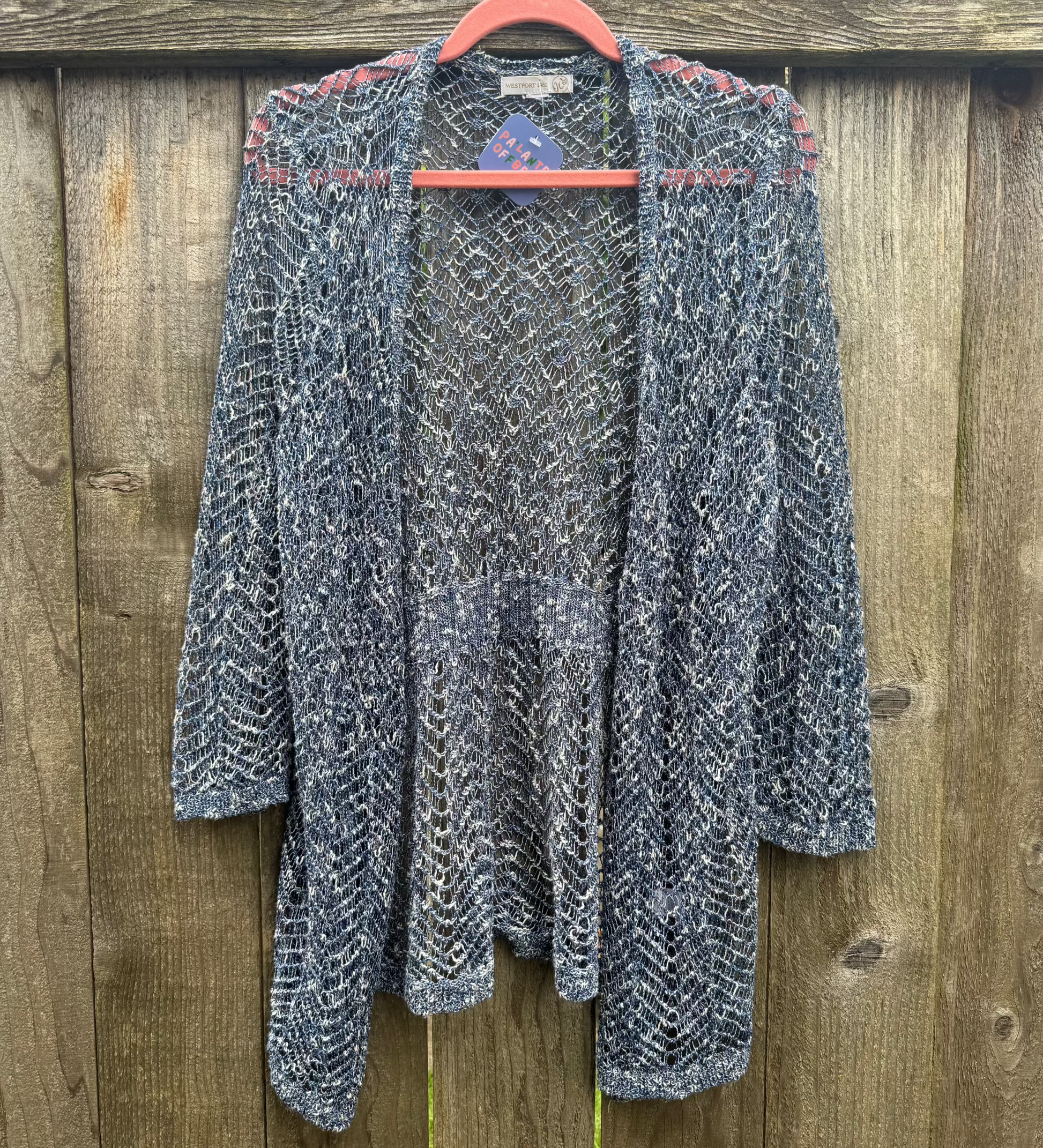 This y2K style blue and white knit cardigan is the perfect layering element to your vintage throwback fit. Perfect for spring, summer, and early fall!